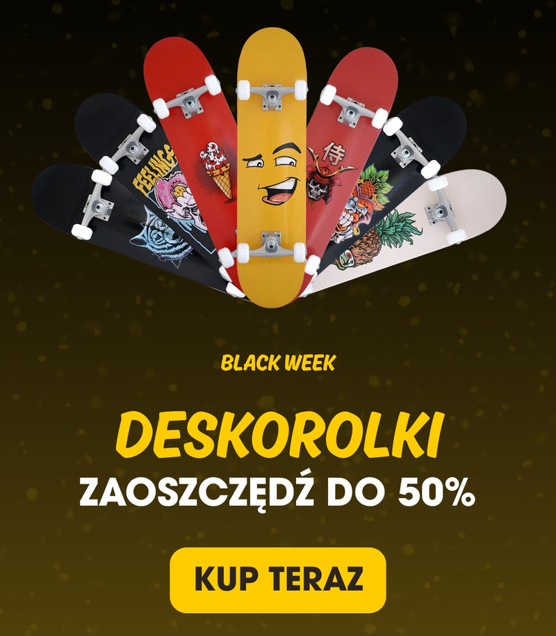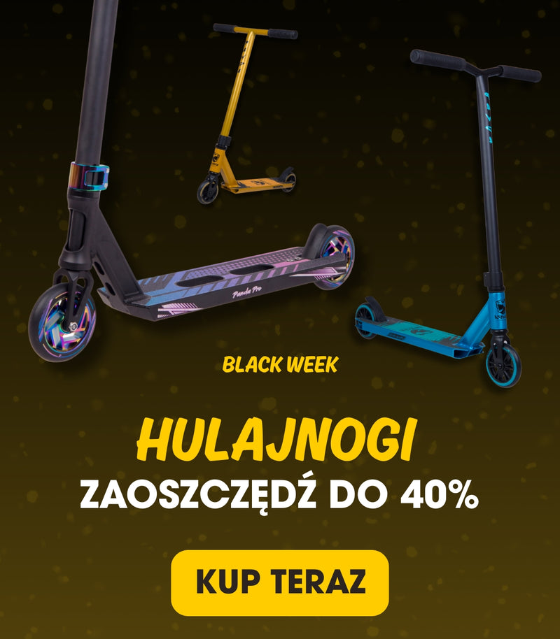 Black Friday już jest! Skorzystaj z najlepszych ofert roku na hulajnogi wyczynowe, części, ochraniacze, wrotki i deskorolki. Obowiązuje od 21 listopada do 1 grudnia.